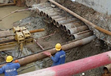 管幕施工時沿隧道軸線方向采用密排法將φ299mm的鋼管水平直線鋪設在土體里,與隧道外輪廓最小凈距25cm,并在φ299mm鋼管連接處打入φ60mm鋼花管進行管幕內外回填注漿,對土體進行注漿加固并使φ299鋼管成為一個整體。在施工過程中確保導向鉆孔精度,然后擴孔與拉管同時完成,并及時注漿,成功控制了地面及鐵路軌面沉降,確保了鐵路正常運行及隧道施工的安全。